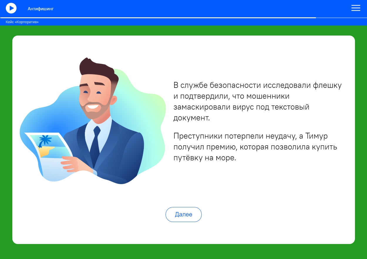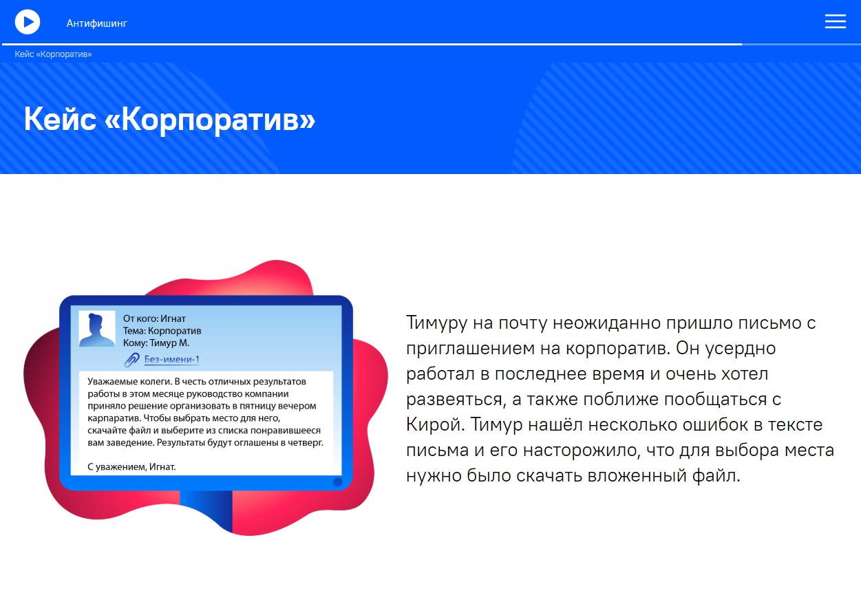 Представьте, что сотруднику вашей компании пришло фишинговое письмо. Поймёт ли он, что перед ним не предложение выгодного сотрудничества, а попытка мошенников украсть ценную корпоративную информацию? Правильно ли он будет действовать в этом случае?