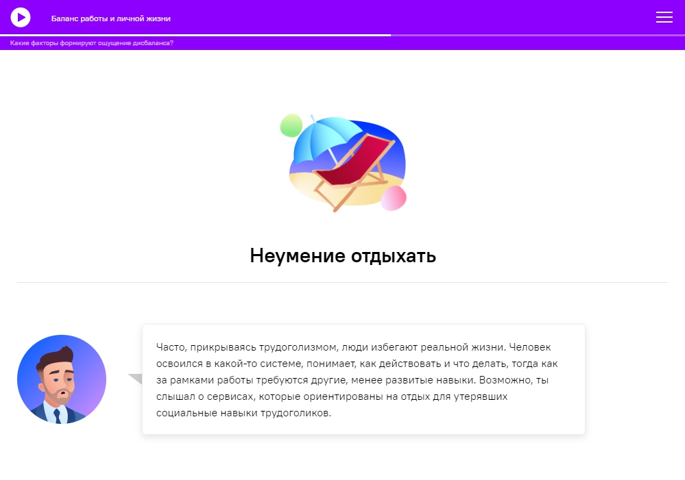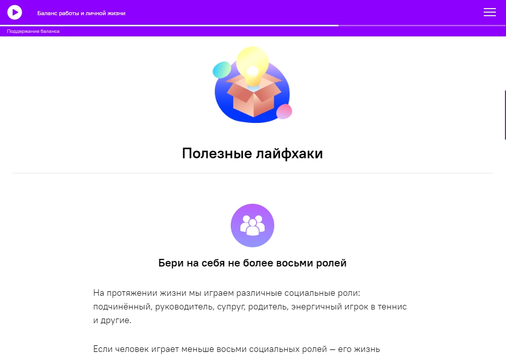 Хороший баланс дизайна и подачи материала. Концентрированные материалы, много лайфхаков, нет воды. Грамотный подход к содержанию, методологии, визуальной составляющей. А на основе курса про "Наставничество" мы планируем разработать программу обучения для сотрудников.