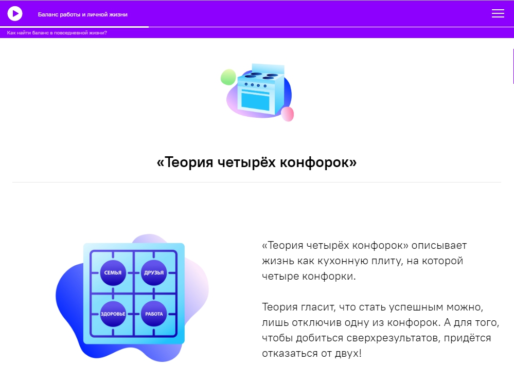 Мы отвлекаемся и не выполняем задачу до конца. Она тянется за нами, как неустановленное обновление или непрочитанное сообщение, и не даёт двигаться дальше. Мысли о ней мешают сосредоточиться на том, что происходит здесь и сейчас. И это бесконечный круг. Чтобы избежать такого состояния, нужно под другим углом посмотреть на равновесие рабочего и личного времени. Это не исключающие, а дополняющие друг друга аспекты жизни. Ведь отправляясь вечером домой с выполненными рабочими задачами, вы не будете за ужином получать бесконечные вопросы от коллег. А значит, сможете уделить время себе и близким и получить те эмоции, которые вдохновят на решение других задач.