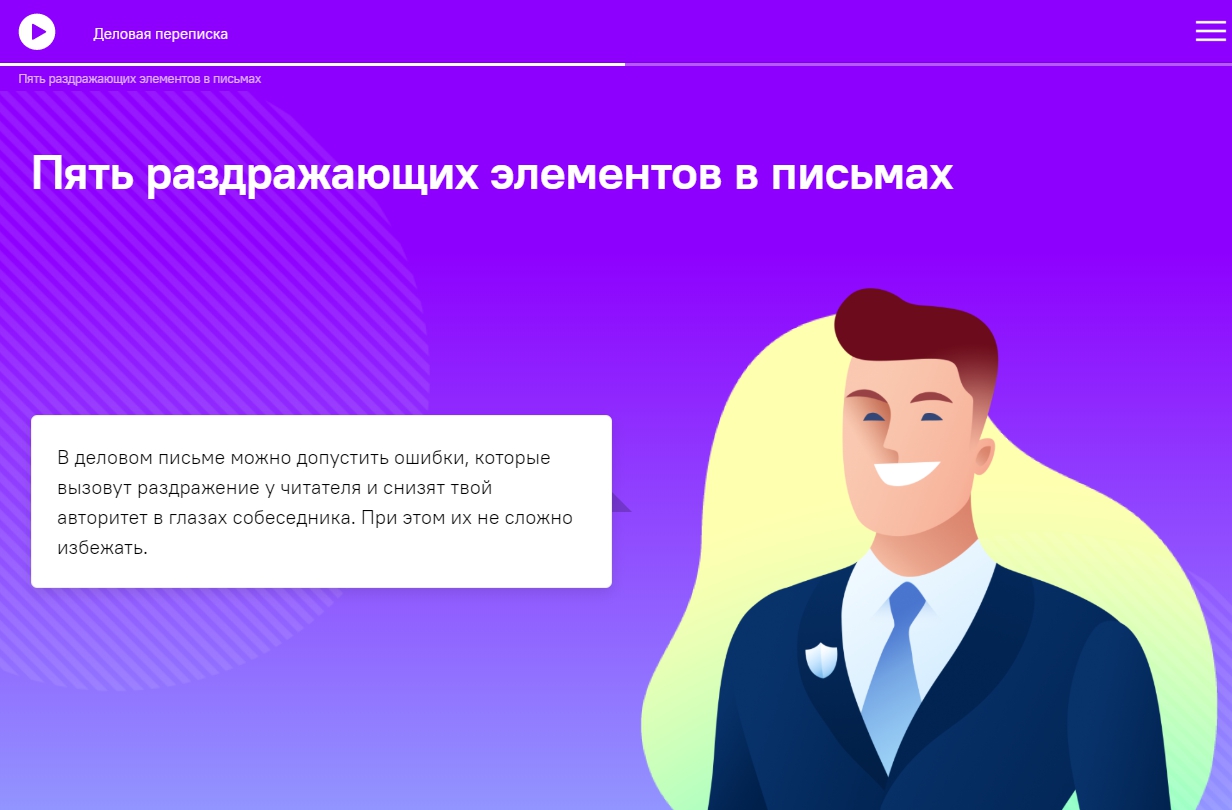 Что вы чувствуете, когда вам приходит электронное письмо от клиента или партнёра, в котором нет приветствия, подписи или не хватает нескольких важных запятых? А если послание составлено таким языком, что его сложно понять и однозначно интерпретировать? Курс научит вас избегать основных ошибок в деловой переписке и расскажет, как оставить приятное впечатление всего одним электронным письмом.