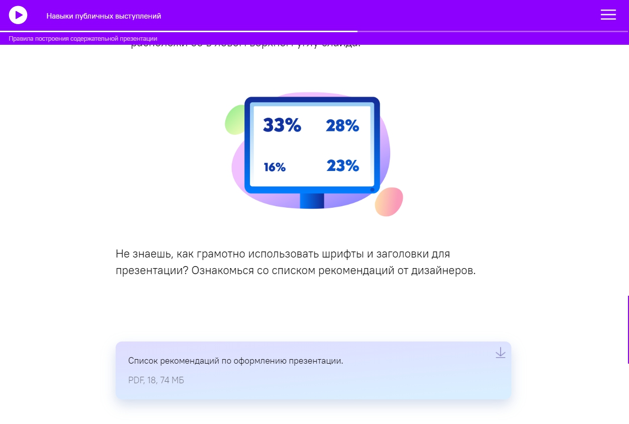 Хороший баланс дизайна и подачи материала. Концентрированные материалы, много лайфхаков, нет воды. Грамотный подход к содержанию, методологии, визуальной составляющей. А на основе курса про "Наставничество" мы планируем разработать программу обучения для сотрудников.