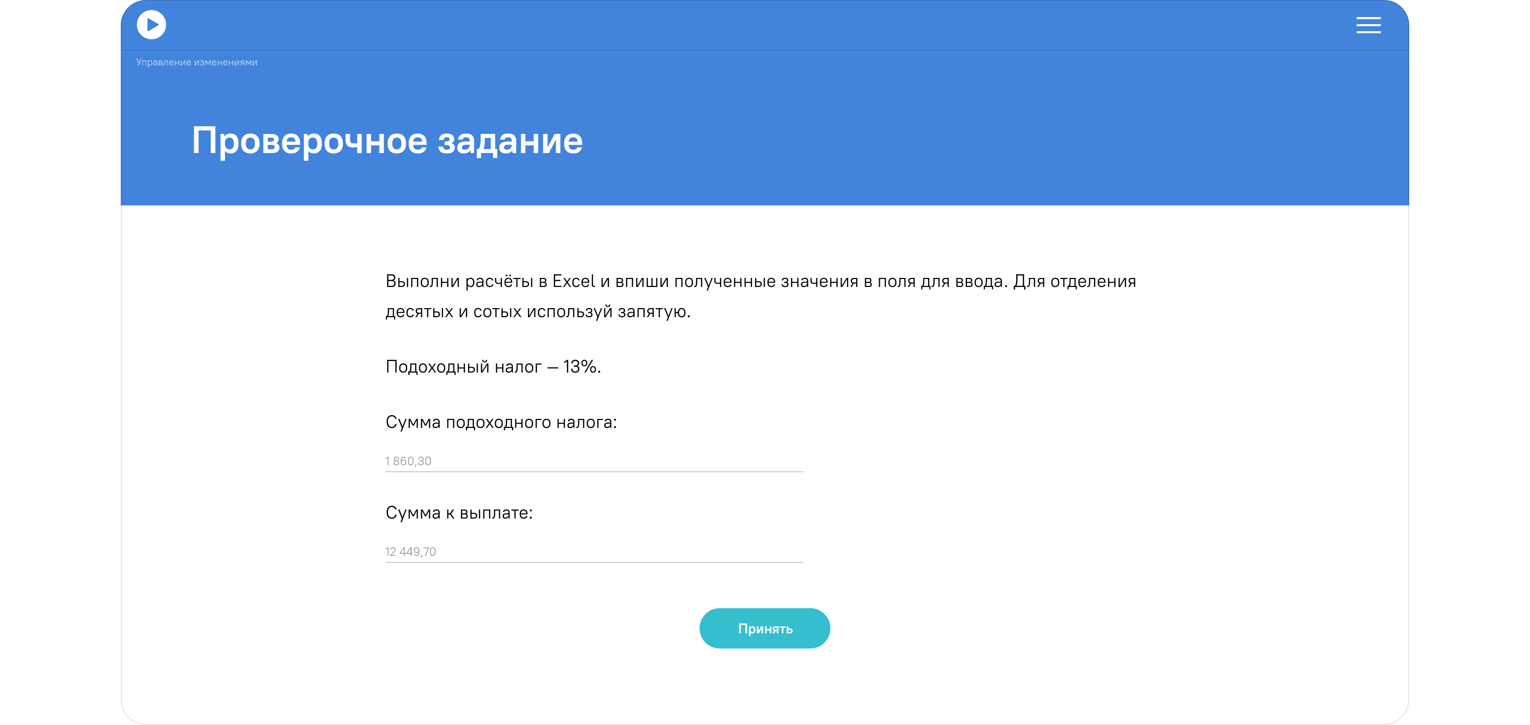 Спасибо большое за грамотно и профессионально составленный курс! Приятно удивили и разнообразили обучение: тесты и задания. Примеры были интересными. Курс усвоился отлично. Спасибо за дополнительные материалы и литературу в виде отдельных файлов - это очень удобно. В целом обучение понравилось!