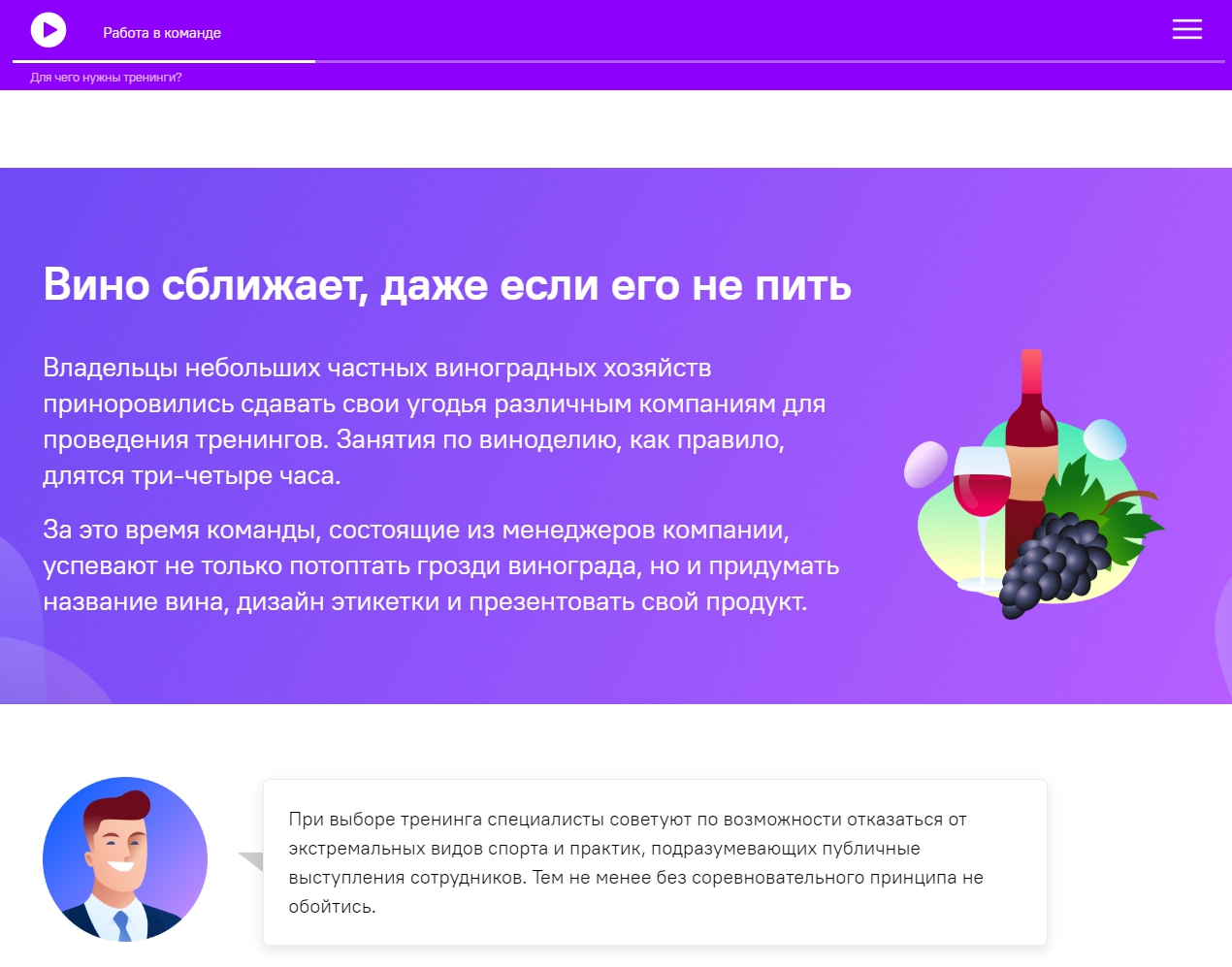 Коллеги, мы довольны проектом Soft Skills и благодарим за взаимосотрудничество! Курсы интересные, динамичные, содержат много полезной и применимой в современной жизни информации. Понравились персонажи, дизайн курсов, а также драйв и юмор, с которым они реализованы. В нашей копании на основе дистанционных курсов Soft Skills реализован on-line проект повышения квалификации сотрудников, главная цель которого дать возможность каждому сотруднику профессионально развиваться, не покидая рабочее место.