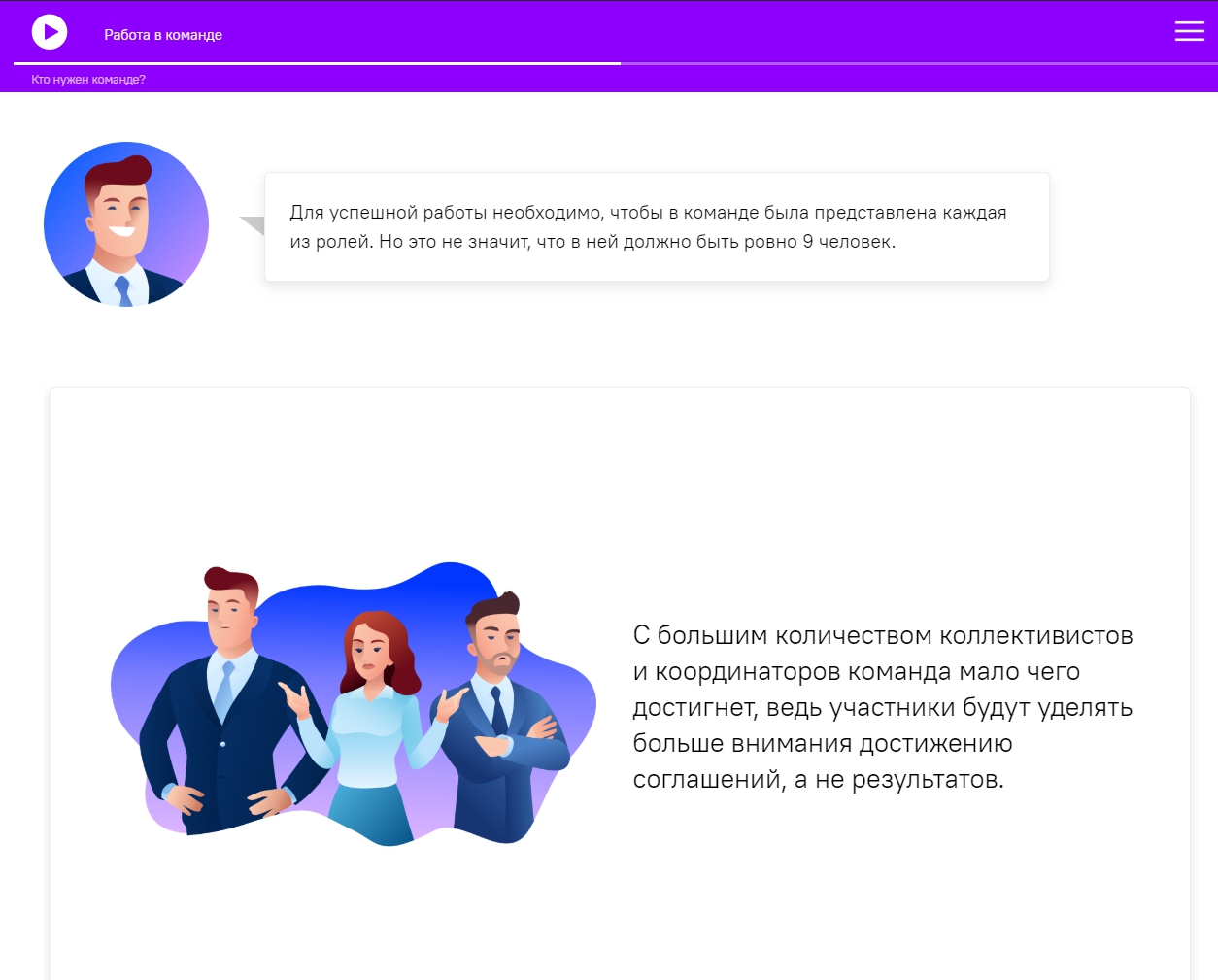 Бывало ли так, что в вашей команде конфликты происходили один за другим? Или все участники проекта прекращали проявлять инициативу, и процесс работы просто останавливался? А может быть, в бурных обсуждениях и множестве идей вы не могли выбрать лучшее решение? Эти ситуации – частые «пороки» рабочих команд. Этот курс расскажет, как их исправить или предотвратить.