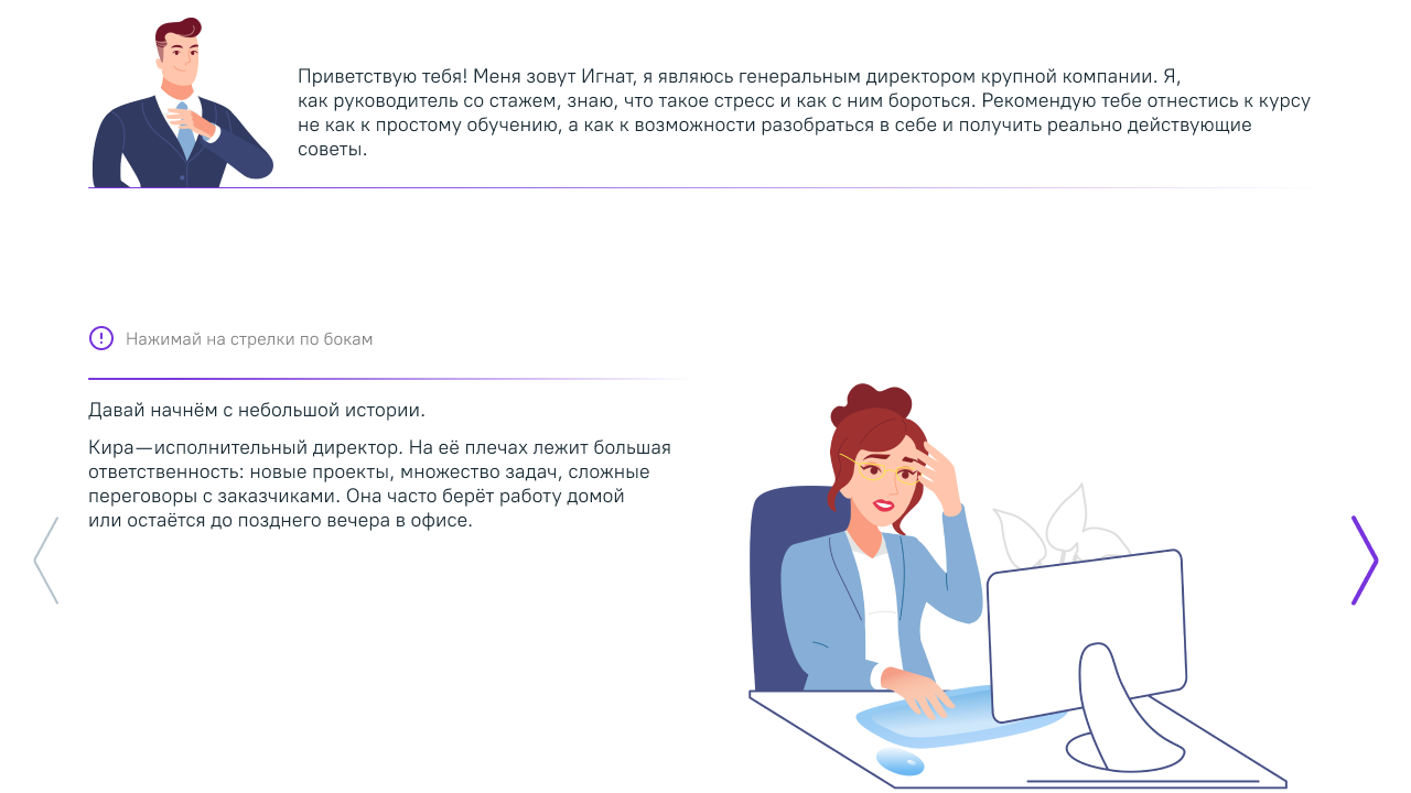 Коллеги, мы довольны проектом Soft Skills и благодарим за взаимосотрудничество! Курсы интересные, динамичные, содержат много полезной и применимой в современной жизни информации. Понравились персонажи, дизайн курсов, а также драйв и юмор, с которым они реализованы. В нашей копании на основе дистанционных курсов Soft Skills реализован on-line проект повышения квалификации сотрудников, главная цель которого дать возможность каждому сотруднику профессионально развиваться, не покидая рабочее место.
