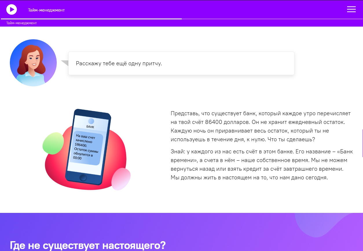 Коллеги, мы довольны проектом Soft Skills и благодарим за взаимосотрудничество! Курсы интересные, динамичные, содержат много полезной и применимой в современной жизни информации. Понравились персонажи, дизайн курсов, а также драйв и юмор, с которым они реализованы. В нашей копании на основе дистанционных курсов Soft Skills реализован on-line проект повышения квалификации сотрудников, главная цель которого дать возможность каждому сотруднику профессионально развиваться, не покидая рабочее место.