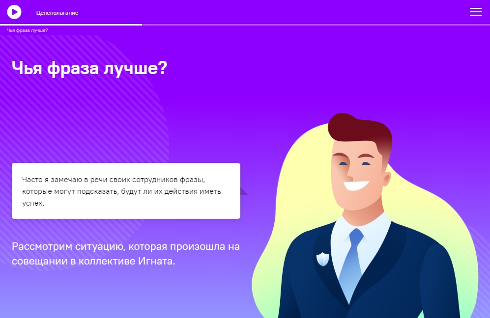 Коллеги, мы довольны проектом Soft Skills и благодарим за взаимосотрудничество! Курсы интересные, динамичные, содержат много полезной и применимой в современной жизни информации. Понравились персонажи, дизайн курсов, а также драйв и юмор, с которым они реализованы. В нашей копании на основе дистанционных курсов Soft Skills реализован on-line проект повышения квалификации сотрудников, главная цель которого дать возможность каждому сотруднику профессионально развиваться, не покидая рабочее место.