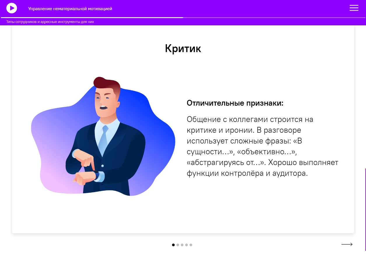 Коллеги, мы довольны проектом Soft Skills и благодарим за взаимосотрудничество! Курсы интересные, динамичные, содержат много полезной и применимой в современной жизни информации. Понравились персонажи, дизайн курсов, а также драйв и юмор, с которым они реализованы. В нашей копании на основе дистанционных курсов Soft Skills реализован on-line проект повышения квалификации сотрудников, главная цель которого дать возможность каждому сотруднику профессионально развиваться, не покидая рабочее место.