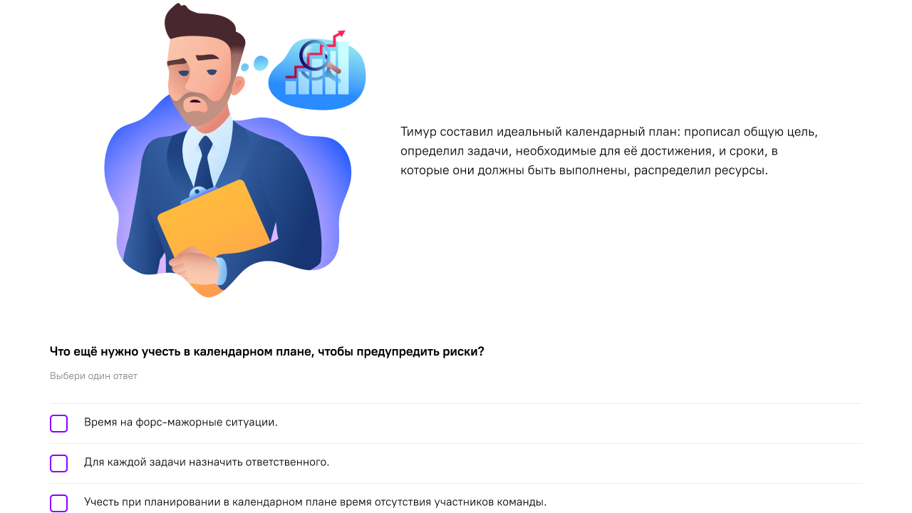 Курс «Управление проектами: новый план» сосредоточен на разборе реальных примеров ведения проектов, чтобы помочь вам сделать проектную деятельность в компании максимально комфортной для всех участников с учетом возможных рисков и отклонений от плана.