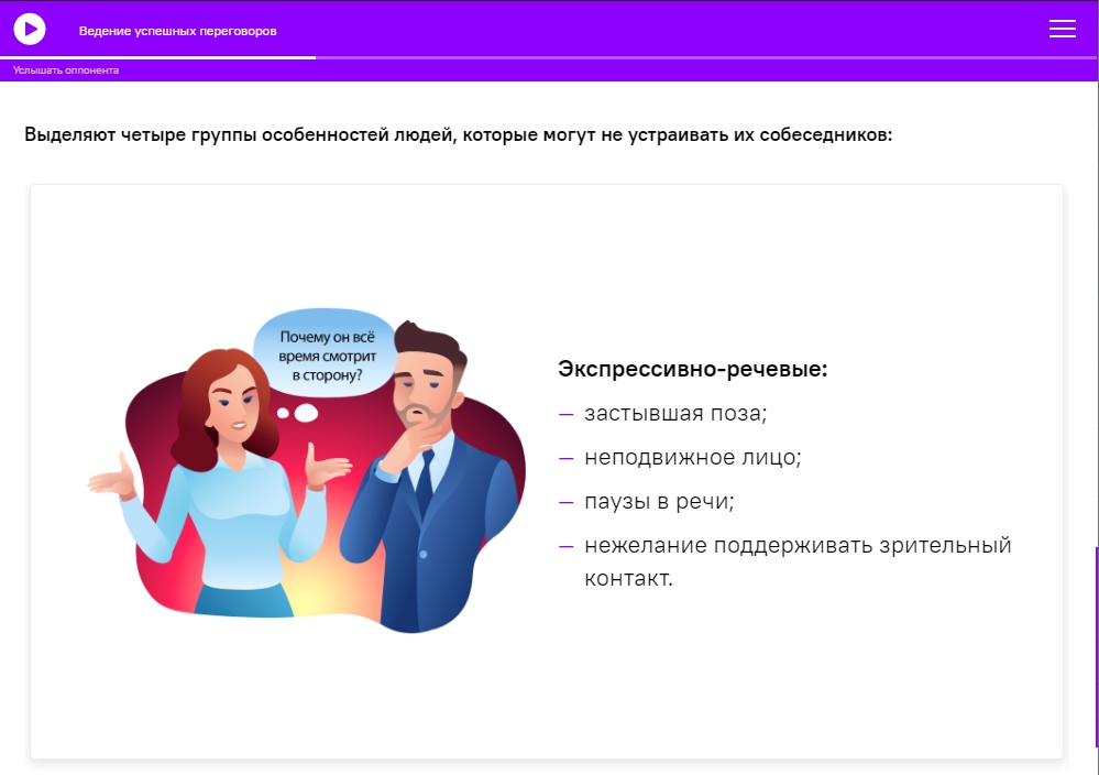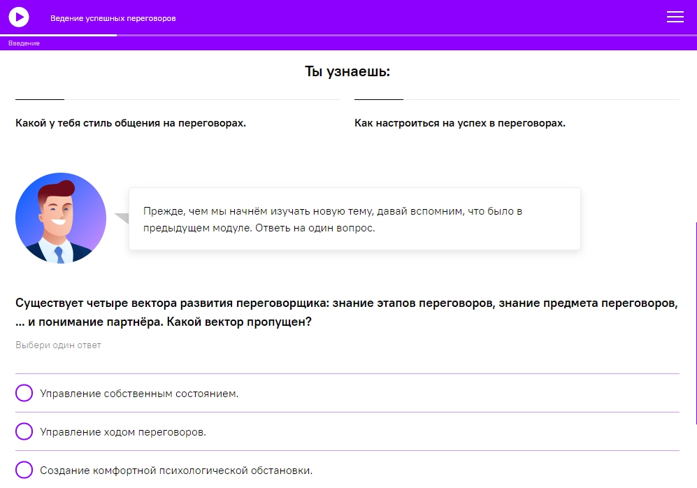 Легка ли переговорная практика? «Легка», – скажет тот, кто никогда её не имел. Как любой коммуникативный навык, ведение переговоров – непростое искусство, требующее от обеих сторон определённых качеств и умений. В этом электронном курсе вы с ними ознакомитесь.