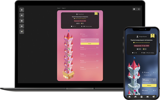 Это игровой формат тестирования, в котором пользователь проходит этажи башни.